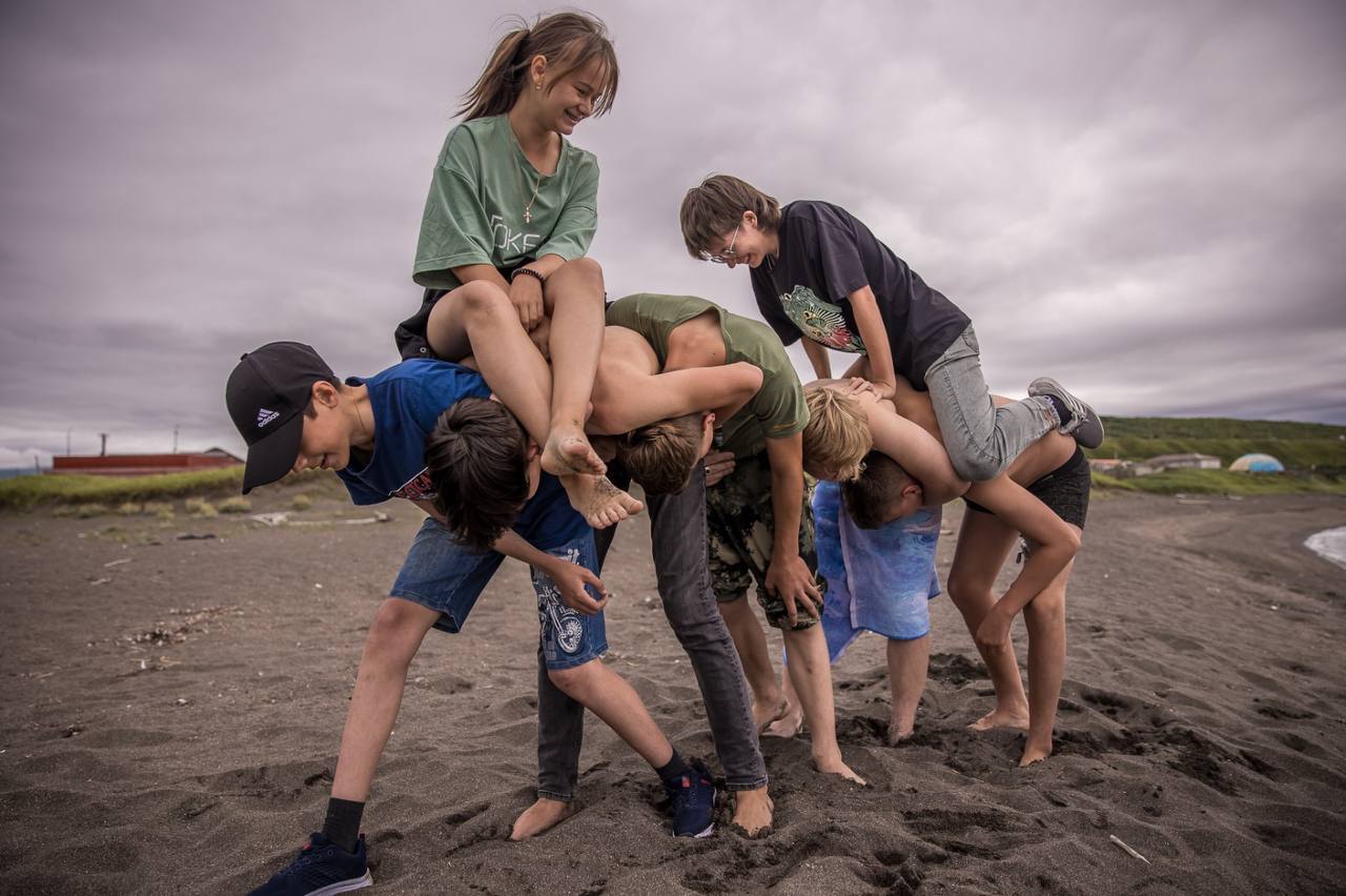 В 2021 году вместе с Людмилой Шапкой и компанией «Гидрострой» мы сделали книгу «Коренные курильчане». Ее идея родилась неожиданно. Я разговаривал с Людмилой и видеооператором Сергеем Нерсесяном и рассуждал, как было бы интересно сделать книгу про деревья. На Курилах они особенные: искривленные, ломаные постоянными ветрами березы и лиственницы. Людмила говорила о социальной теме: о детях, тех самых коренных курильчанах, ведь взрослых коренных жителей там практически нет. И вот Сергею удалось срастить эти две идеи в одну: «Дети — это коренные курильчане. И деревья — тоже коренные».