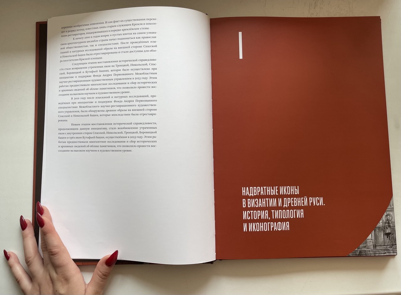 Я, признаться честно, переживала из-за ответственности, возложенной на наше издательство. Даже несколько раз вместе с цветокорректором приезжали в мастерскую, где поновлялись иконы Кремля, чтобы с точностью передать детали, оттенки и формат полотен в книге. Все же видя святыни воочию, глядя глаза в глаза на лики, ты испытываешь совершенно возвышенное и переполняющее чувство! Могу с точностью сказать, что все причастные к проекту пронесут эту историю с любовью в сердце; и очень здорово, что теперь мы можем ей делиться с нашими читателями.