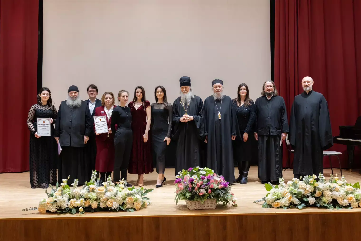 Торжественную часть продолжил праздничный концерт, подготовленный студентами Московской государственной консерватории имени Петра Чайковского. В программу вошли богослужебные песнопения, фортепианные произведения, посвященные подвигу Александра Невского, а также всеми любимые баллада «Жди меня» и песня «Смуглянка».