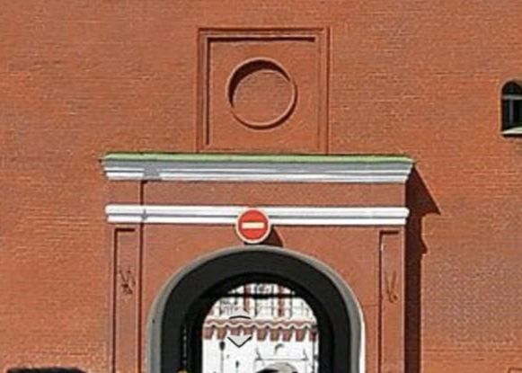 Впервые о святых образах равноапостольных Константина и Елены на Кутафье башне также зафиксировано в записках архидиакона Павла: «Снаружи на воротах упомянутой башни стоит образ царя Константина, а над внутренними воротами — образ царя Владимира». Однако дальнейшая история бытования и уничтожения этого образа не отражена в архивных и фотографических материалах.