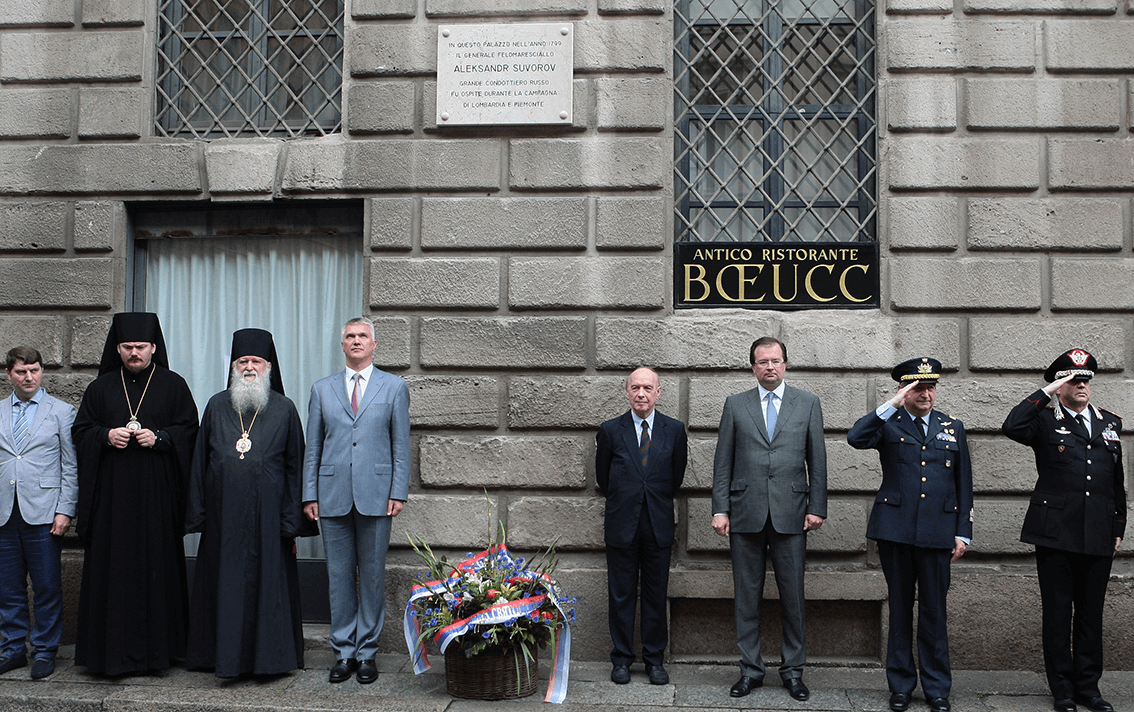 «Великий русский полководец, освободивший Пьемонт и Ломбардию и сокрушивший миф о непобедимости армии Наполеона».