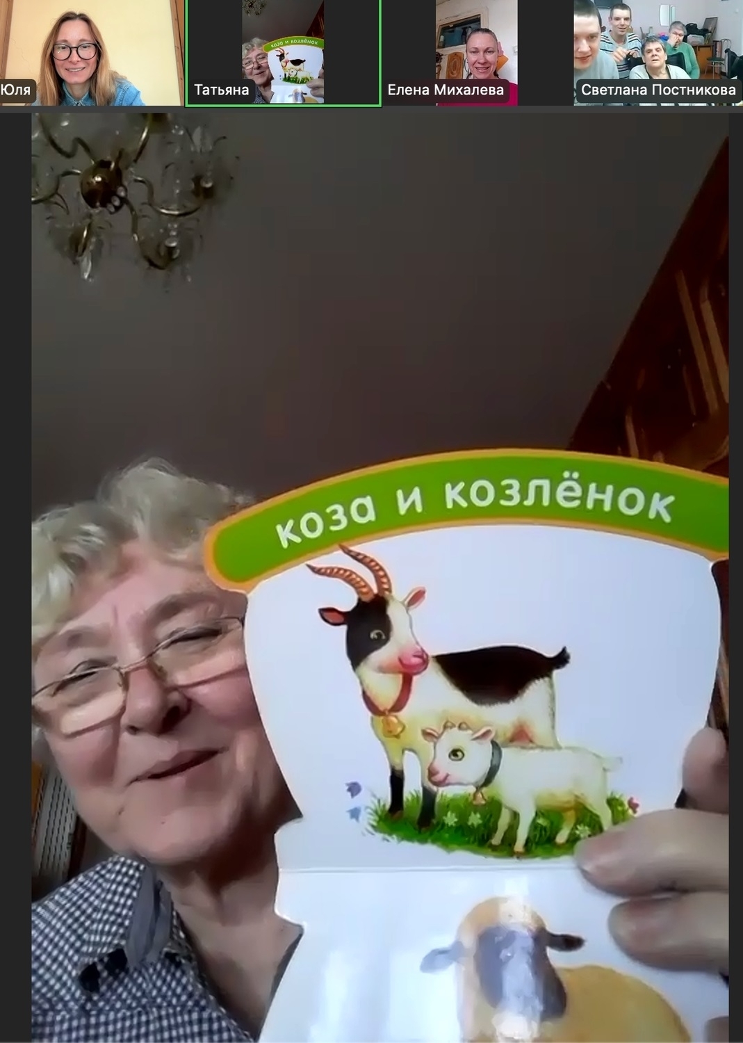 Не всем участникам легко вспомнить слово самостоятельно. Волонтеры всегда готовы помочь. Они подбирают картинки с изображениями предметов или даже показывают настоящие предметы в камеру. Такой наглядный формат делает обучение живым и увлекательным.